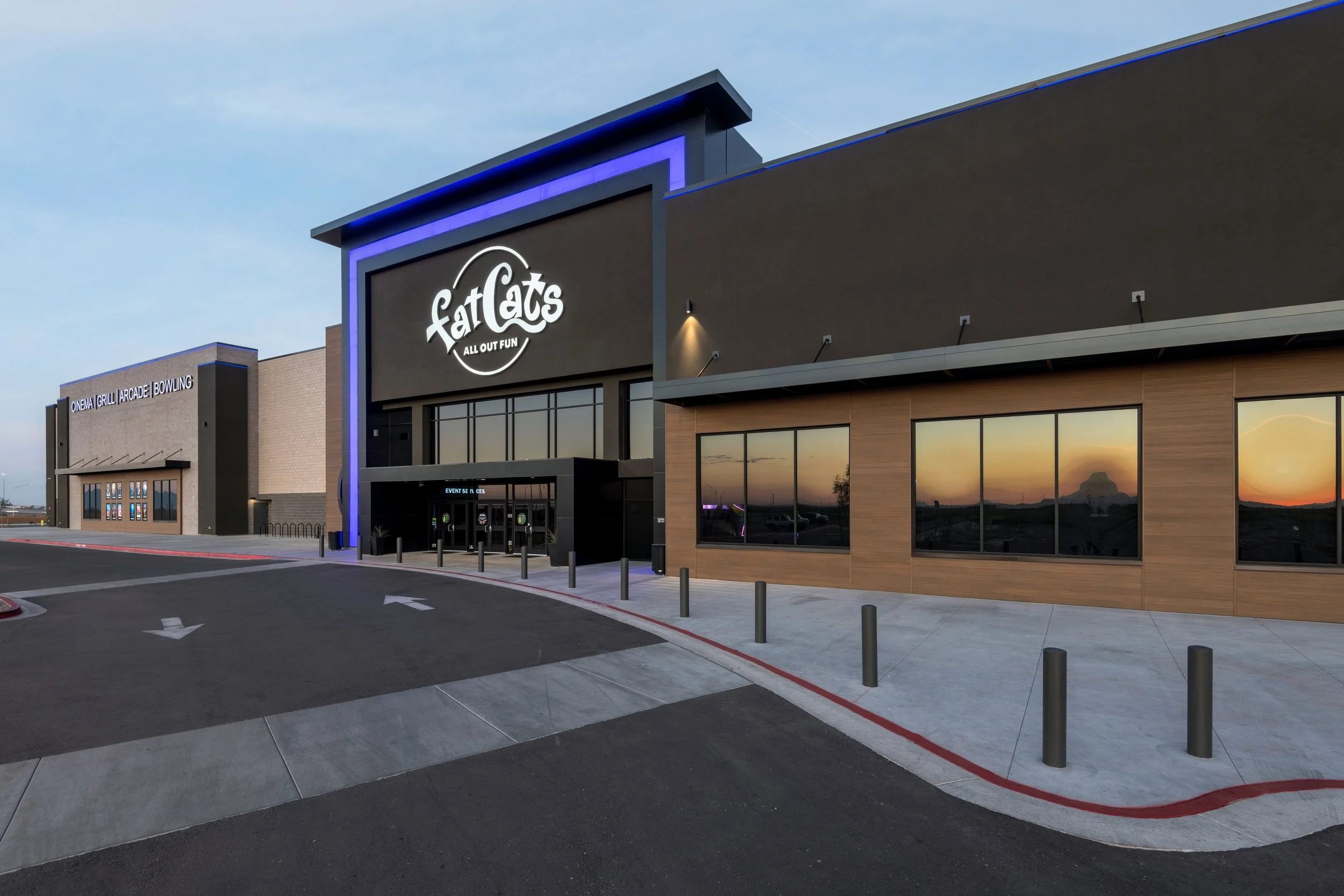 Arts and Entertainment If it's a place people go to have a good time, chances are we've built it. Covering everything from luxury cinema conversions to massive multi-attraction complexes, we deliver technical precision without losing sight of the end goal: fun. Ak-Chin Circle Entertainment Center Ak-Chin Him-Dak Museum AMC - Puente Hills Andretti’s Indoor Karting and Games AMC - Firewheel Bowlero - Dania Beach Cinemark - Plano Coyote Entertainment Center Eclipse Theater FatCats - Mesa FatCats - Surprise Heard Museum Renovation and Expansion iPic Theaters Jake’s Unlimited Krikorian Theatre - Lexington Main Event - Avondale Main Event - Gilbert Main Event - Highlands Ranch Main Event - Tempe Mavrix Regal - Irvine Spectrum Studio Movie Grill - Redlands